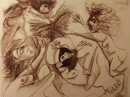 德加在妓女中间,约1971,毕加索,图片:MoMA