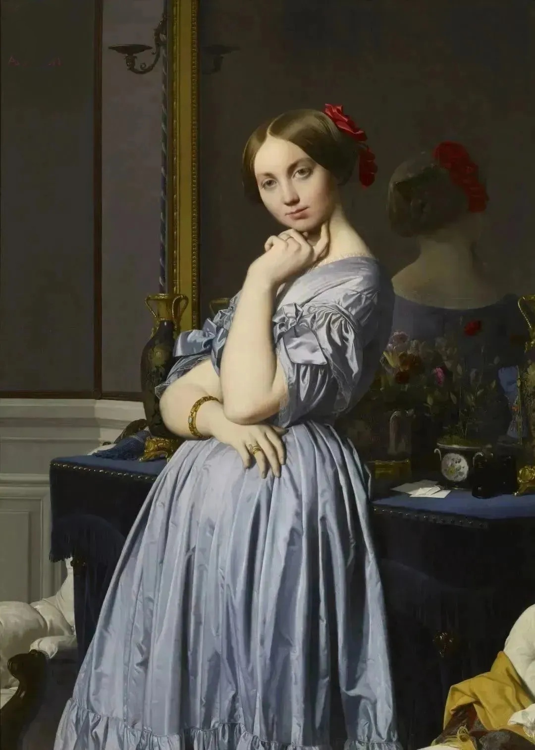 这幅肖像《奥松维尔伯爵夫人》是画家安格尔65岁时所作,可以认为是他晚期趣味的优秀范例之一。