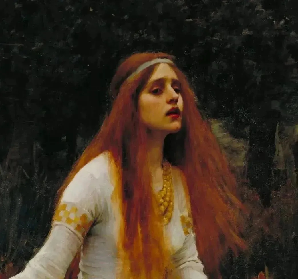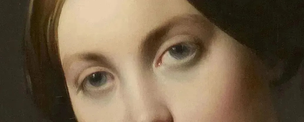 画家对女子的神情刻画得细致入微,光看眼睛也能感受到一丝笑意。