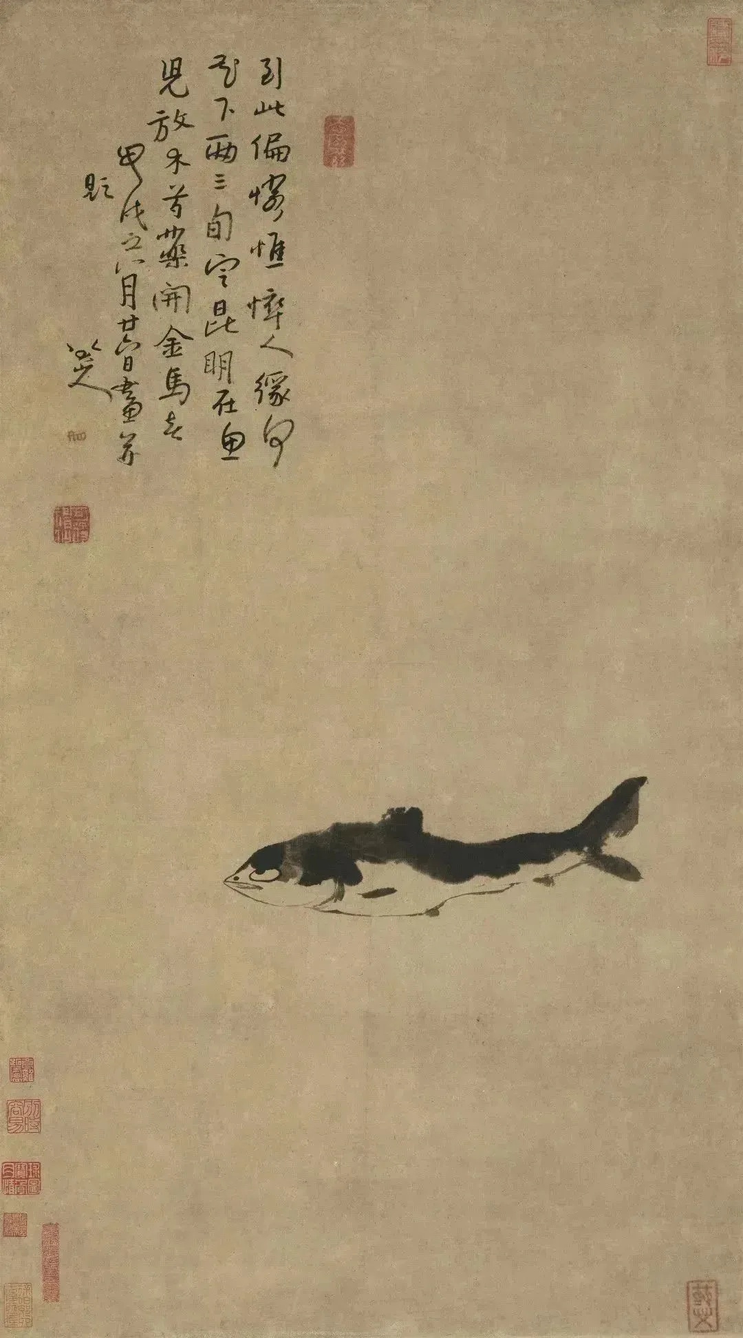 朱耷笔下的鱼与众不同,它们总是以白眼示人,这与他特殊人生经历有关,是他将其情感寄托于画面的表现。