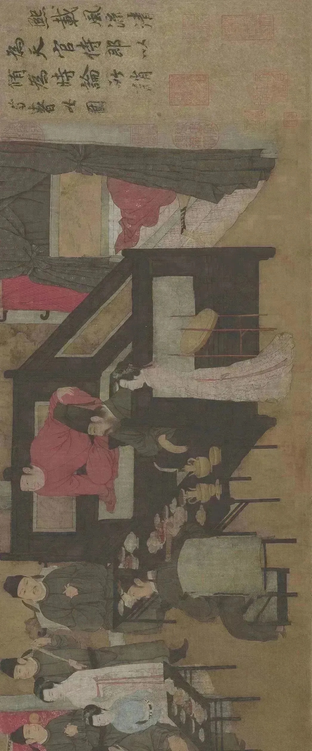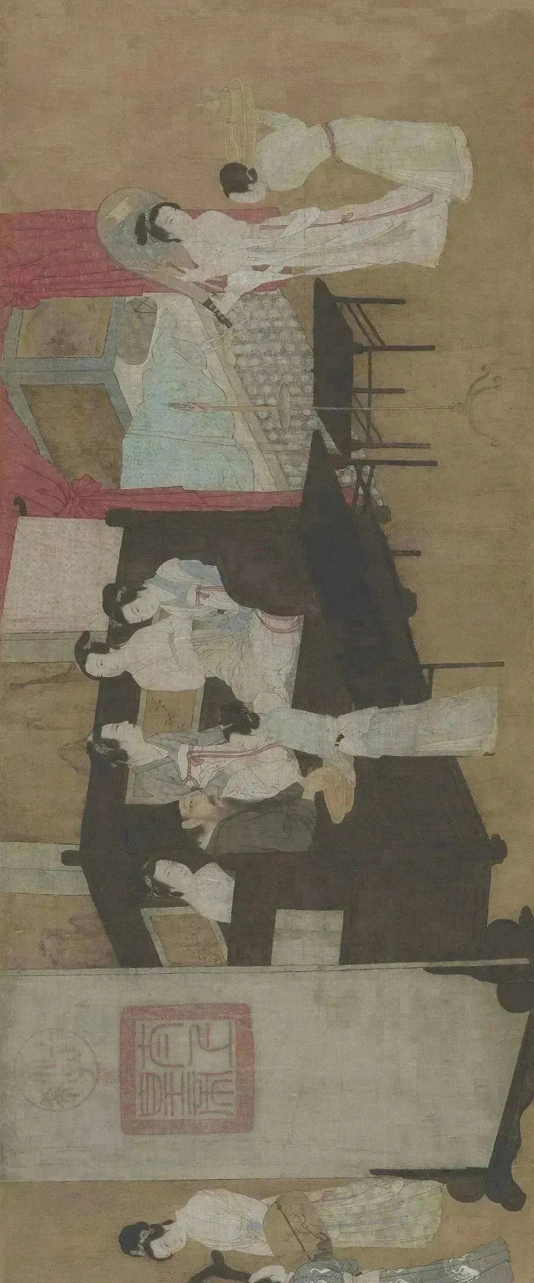 此图为唐寅人物画中工笔重彩一路画风的代表作品,显示出他在造型、用笔、设色等方面的高超技艺。