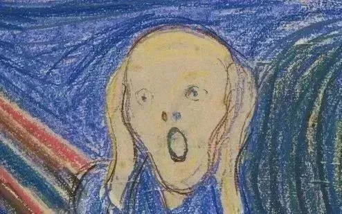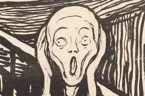 蒙克的代表作《呐喊》是将童年时期家人的相继死亡随之带来的痛苦、悲伤。焦虑、紧张、孤独,犹如火山喷发一样宣泄出来:一座绵延至远方的桥将画面分成两个部分,湍急的漩涡与血红色的天空各占一半。天空被描绘成翻滚的血色巨浪,画面主人公脸部扭曲如一具骷髅,并捂住耳朵发出了令人惊悚的呐喊,背景中有两个被可以拉长的人物,其身份的不确定性,增添了画面的诡异性。这幅画是蒙克在情感状态不稳定的状态下创作的,折射出作者内心的焦虑和潜意识里的精神问题。
