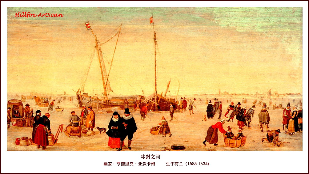 冰封之河,约1620年,油画颜料绘于木板上,16x36cm,鹿特丹,博伊斯•范•伯宁恩傅物馆。