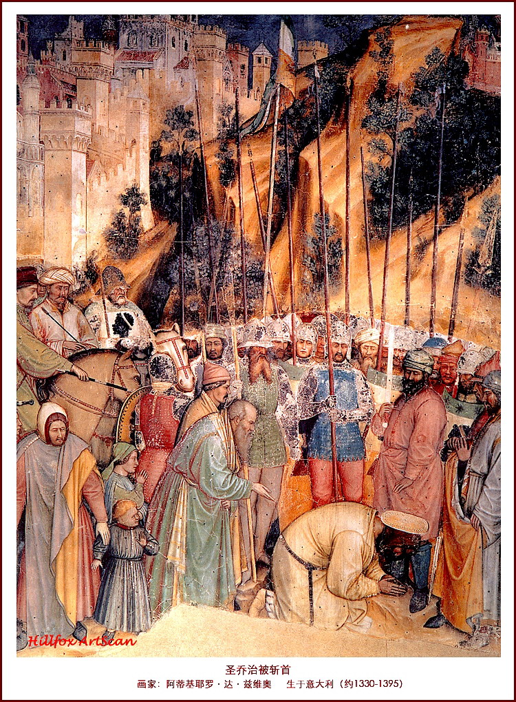 阿蒂基耶罗·达·兹维奥《圣乔治被斩首》引人注目处有两点:
