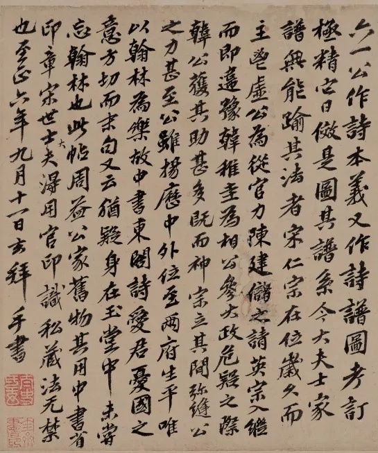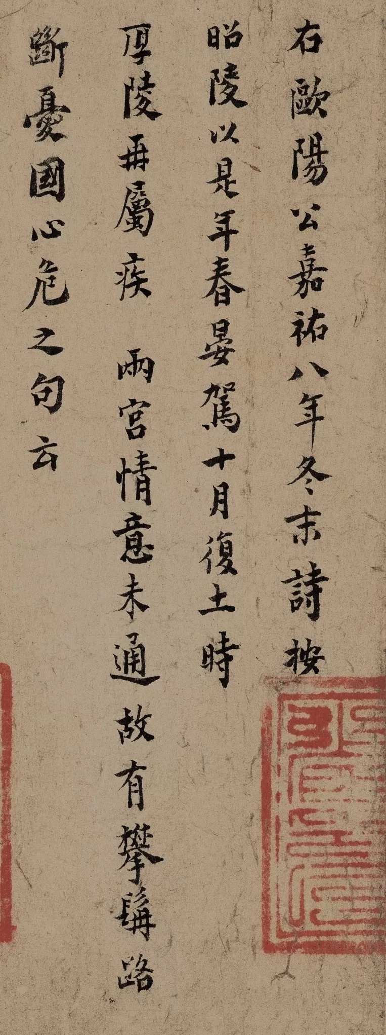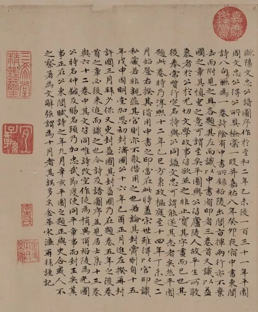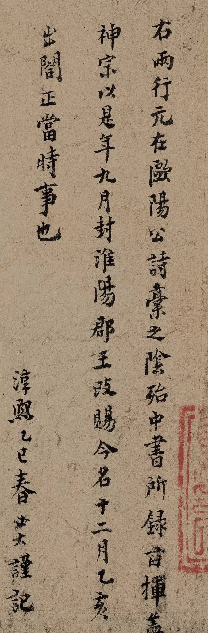 此卷南宋时由周必大所藏,元代时欧阳修六世孙欧阳耐轩得于钱塘(今浙江杭州),又传其八世孙欧阳彦珍,清嘉庆时入内府收藏。
