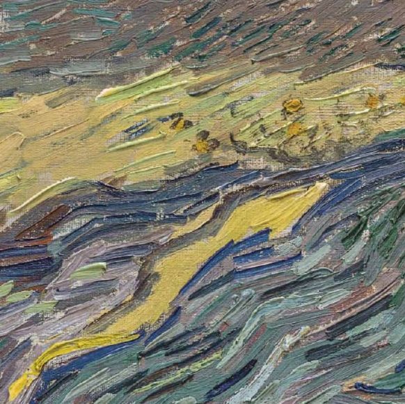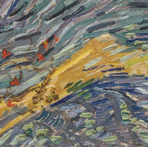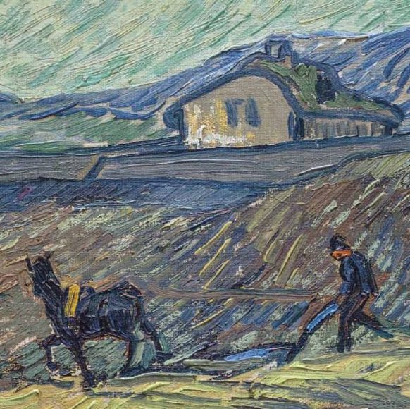 梵高 有围栏的麦田和犁田的人 1889 布面油画 50.3 x 64.9 cm
