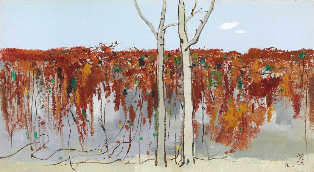 吴冠中《墙上秋色》