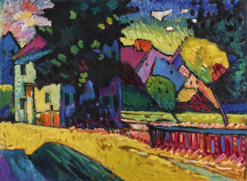 康定斯基 穆尔瑙-风景与绿屋 1909 板上油画 70 x 96 cm