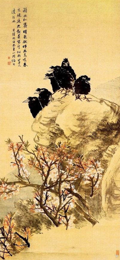 <幽鸟鸣春图> 清 任颐 绢本设色 纵137.5 X横61 8厘米 南京博物院藏