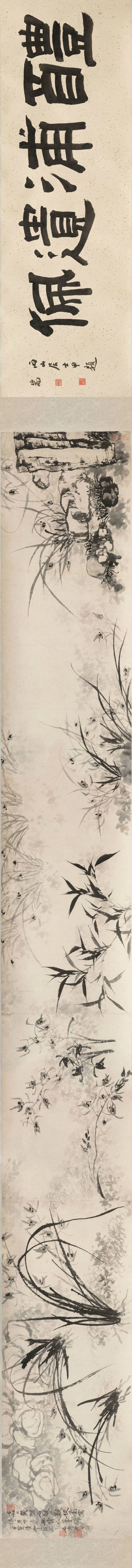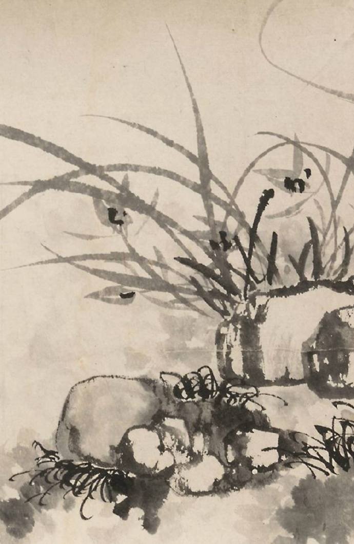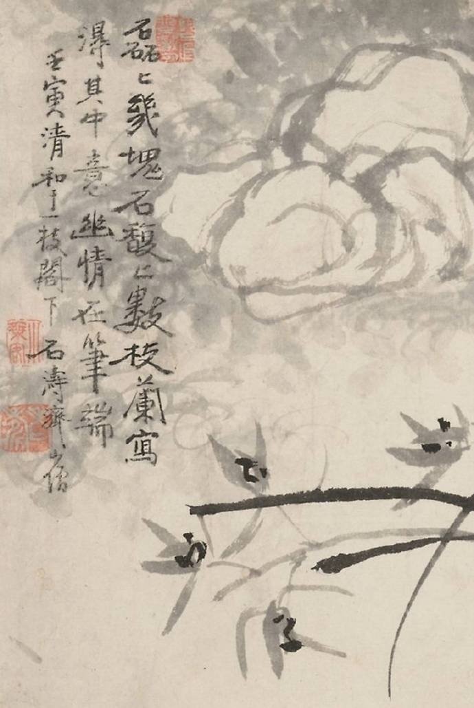 兰、石、竹的铺排错落成趣,石涛可以说是于挥毫之间自抒胸臆,落墨爽利峻迈,运笔淋漓清润,其狂放不羁的个性可由此窥知一二。