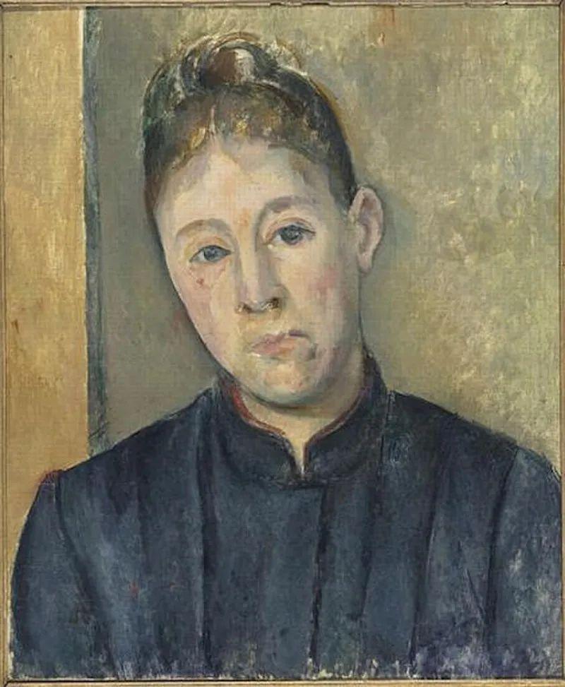 奥尔丹斯·菲格·塞尚在艺术界中是一位谜一样的女人。她在丈夫所作的29幅作品中出现,却没有在一幅作品中微笑过。每每她都被描绘成一个留着中分头的家庭主妇,衣服扣子几乎扣到了她的下巴。