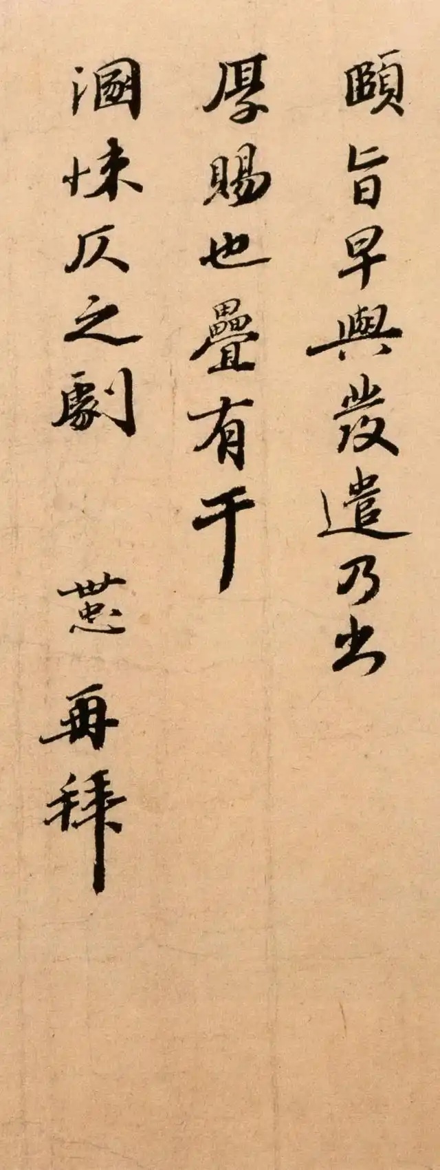 世忠再拜。日者事绪种种’每荷周全,自非高义,何以及此。世忠近以私家身物,悉进朝廷,复得圣旨,令世忠般 取缕细。专遣人拜闻,谅已垂念。若更蒙颐旨,早与发遣,乃出厚賜也。叠有干溷,悚仄之剧。世忠再拜。