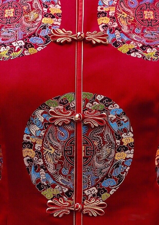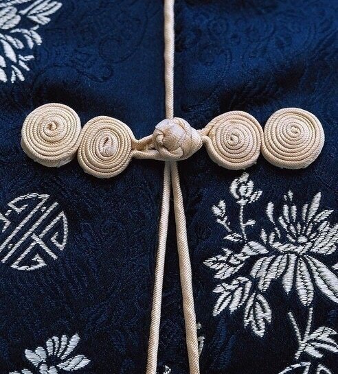 缎绸裹曼妙 襟衩撩风姿 荷叶领绕玉颈 盘扣语心丝