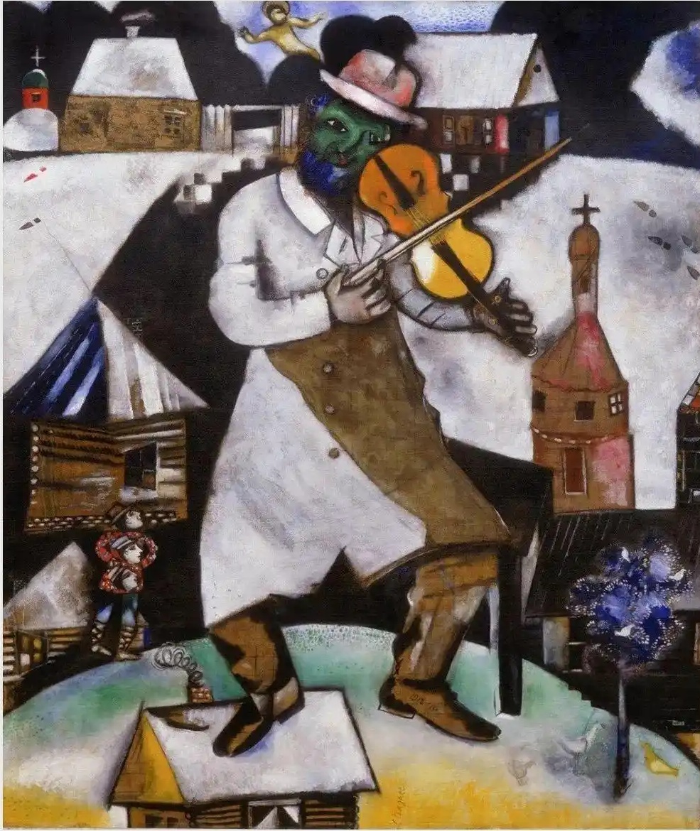 马克·夏卡尔(1887年7月7日-1985年3月28日),出生于俄国的犹太家庭,家境贫困,是超现实主义画家之一,现代绘画史上伟人,游离于印象派、立体派、抽象表现主义等一切流派的牧歌作者。生於 1887 年三月,短短的四十年头,用他个人的才气促长了立体派,观赏他的画永是快乐的一件事。1906 年移居至巴黎,和他的西班牙同胞毕加索比邻而居,并同时观看着立体派的发展,1912年的展览後就得到非常高的名声,与毕加索及布拉克一起工作直至一次世界大战暴发。