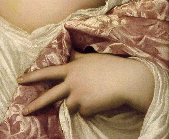 不经意间滑落的外套,洁白的古罗马式内衣,衬托出花神神情的典雅与肉体的丰满。提香特别强调画面的肌理,色彩也显得生动活泼,尤其是人物肌肤的肉色,呈现出真实女人的皮肤颜色,而非理想化的表现。