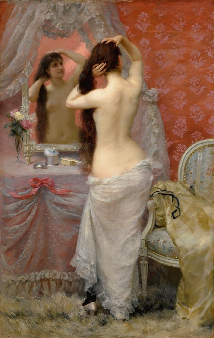 "Jeune femme nue se coiffant dans un intérieur" (1887)