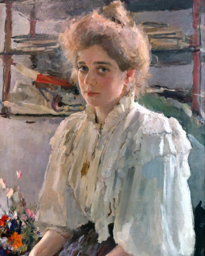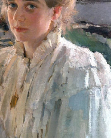 谢洛夫(1865年- 1911年),俄罗斯杰出的肖像画家。又是俄国现实主义绘画的重要代表。曾为列宾的学生,后又受契斯恰柯夫的教导,为巡回展画派的成员之一。他悉心研究西欧绘画,探索新的形式,一生作了大量的肖像画。画风明快冼练,善于刻画人物性格。