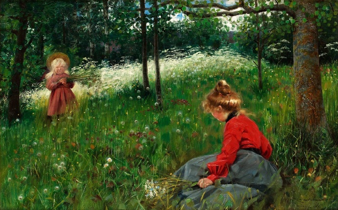 夏日草地上的女孩,1902 年,瑞典画家Robert Lundberg