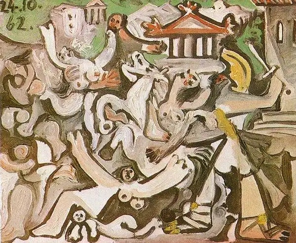 毕加索(Pablo Picasso)于1962年创作了两幅《劫持萨宾人》(The Abduction of Sabines)。