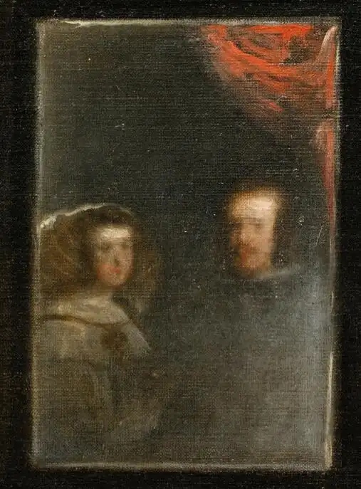 由于费利佩四世第一任妻子伊丽莎白于1644年10月6日去世,所以镜中女人应该是第二任妻子,也是小公主玛格丽特·特蕾莎的生母玛丽亚·安娜王后。