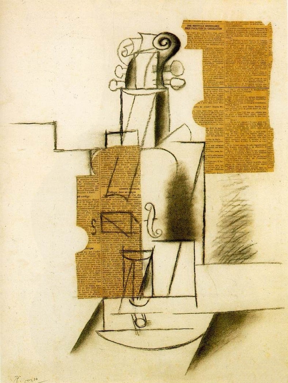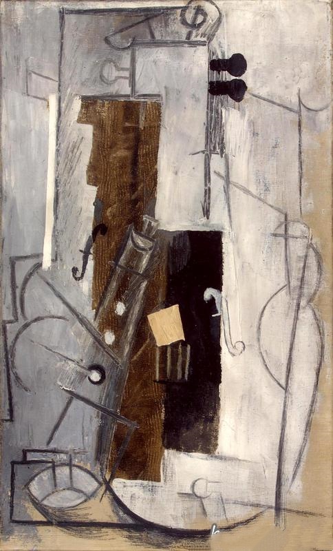 小提琴、单簧管、玻璃瓶、报纸 年份1913年