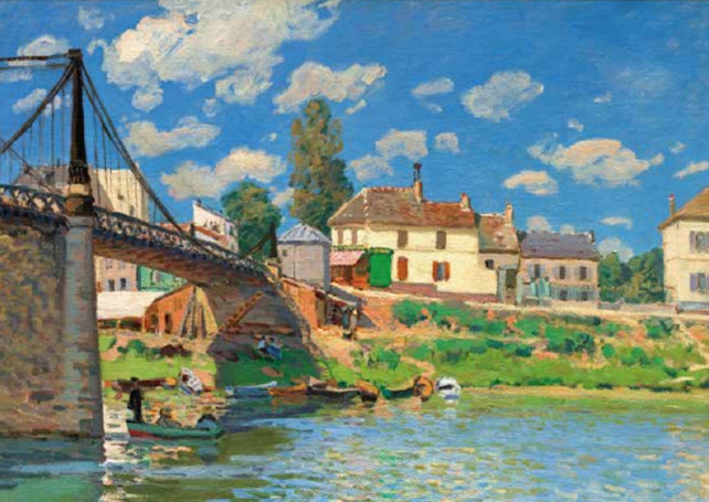 这幅150年前的画,就有了宫崎骏同款治愈蓝!1872年,正值印象派运动初期,阿尔弗雷德·西斯莱创作了《维伦纽夫-拉加雷纳的桥》(The Bridge at Villeneuve-la-Garenne)。