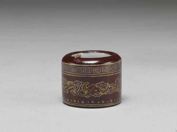 台北故宫藏陶瓷扳指,扳指在后世的装饰功能和实用功能被逐渐削弱,故而多将扳指做茶道中的盖置来使用。