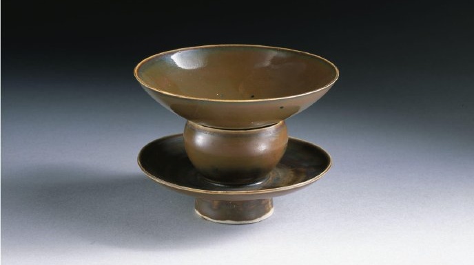 这件藏于英国 V&A 博物馆的北宋定窑褐釉盏托,是 11 世纪中国河北地区烧制的定窑珍品,现陈列于徐展堂中国艺术馆 44 号展厅,兼具工艺稀缺性与历史研究价值,尤其作为少见的 “紫定” 品类,是研究北宋定窑釉色多样性的重要实物。