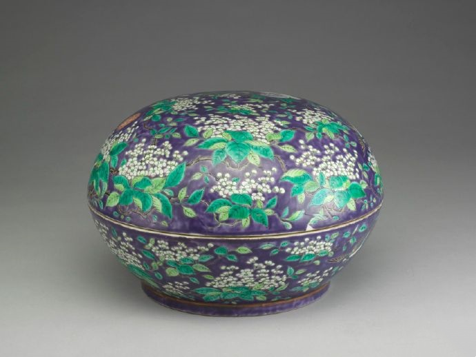 清 同治 紫地粉彩花鳥盒