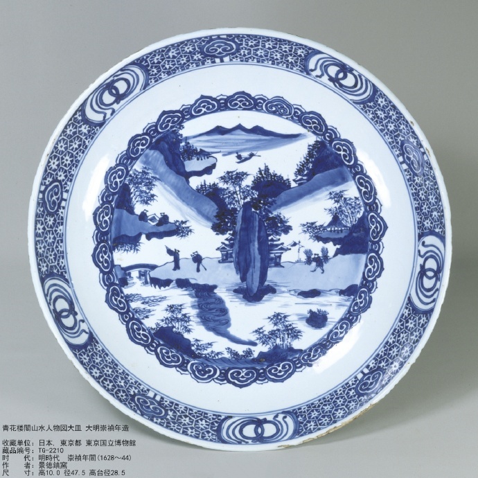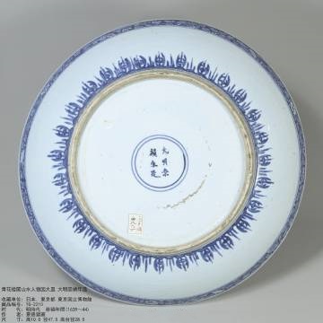 明崇祯 青花山水楼阁人物图盘