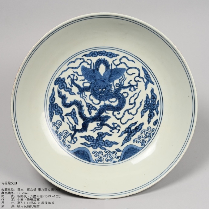 该盘底部款识书有“万历年制 捧日楼用”八字双行楷书款,属万历朝首辅张居正居所专用器。款识罕见,极为特别。香港怀海堂亦藏同款瓷盘。