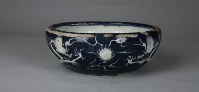 重庆中国三峡博物馆 太和王府款蓝釉釉白龙纹瓷缽