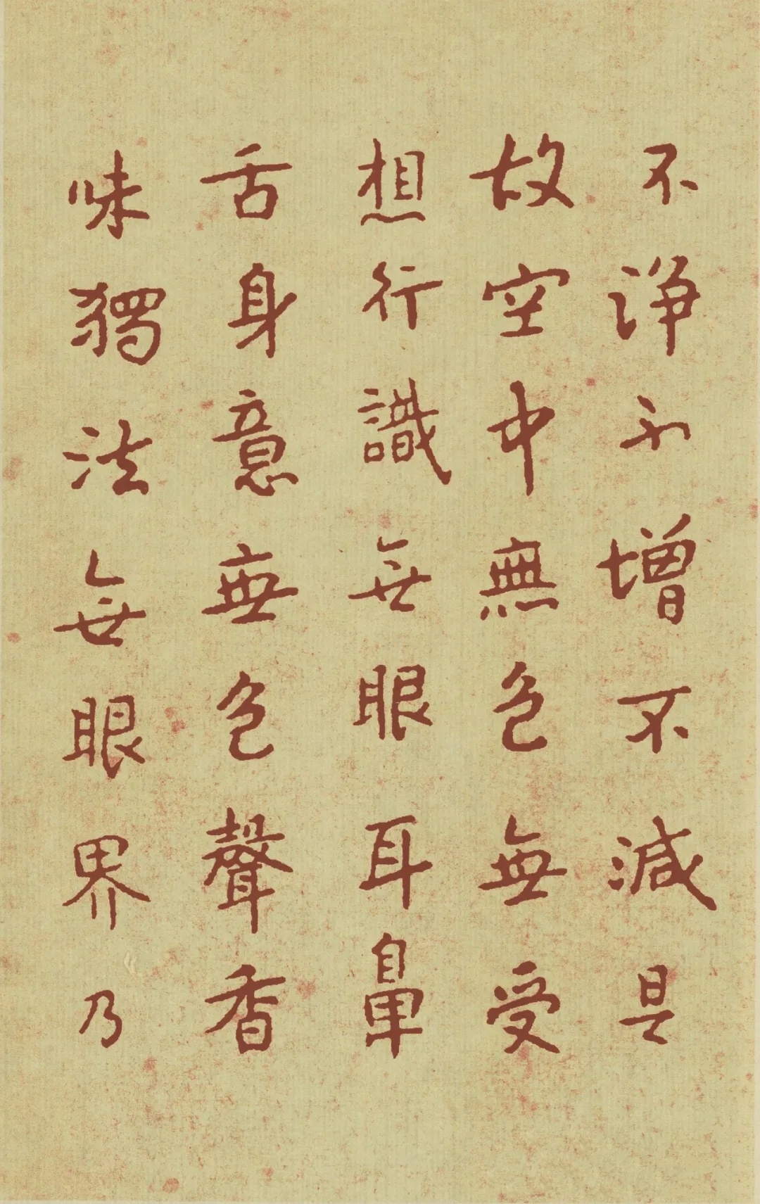 此经卷创作于康熙四十四乙酉(1705年),时年八大山人79岁,笔法简洁含蓄,结字奇异古拙,气息静穆单纯,展现出平淡自然、不加修饰的境界。其笔画刚劲柔和,墨色均匀凝重,结构规整中蕴含错落,疏密得当,整体章法错落有致,平和不躁,体现了“质朴无华古拙成趣”的特点。