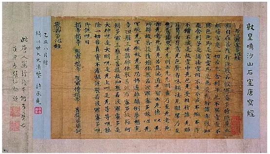 款题:敦煌鸣沙山石室唐写经,乙丑八月赠,绮川世兄清鉴,许承尧。