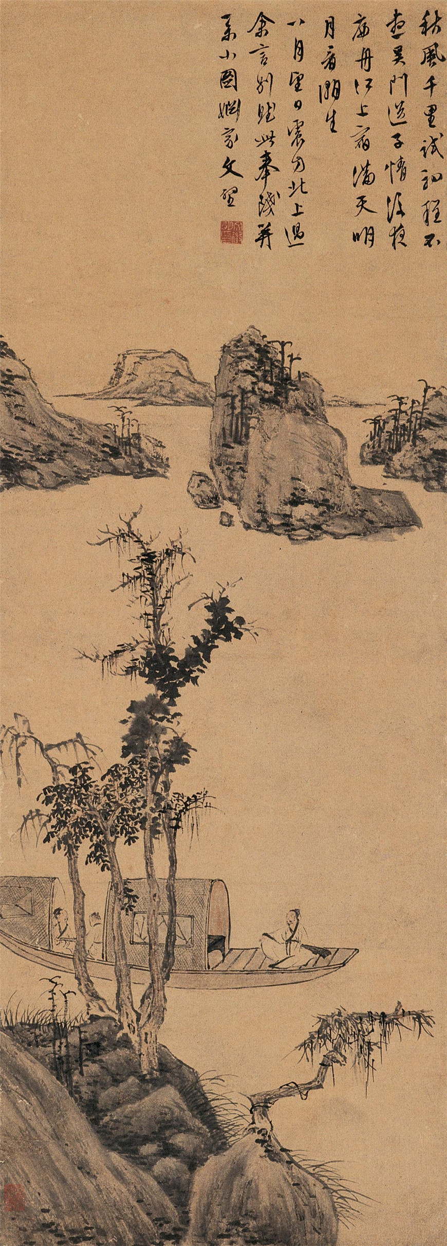 文徵明 秋江饯别图 立轴