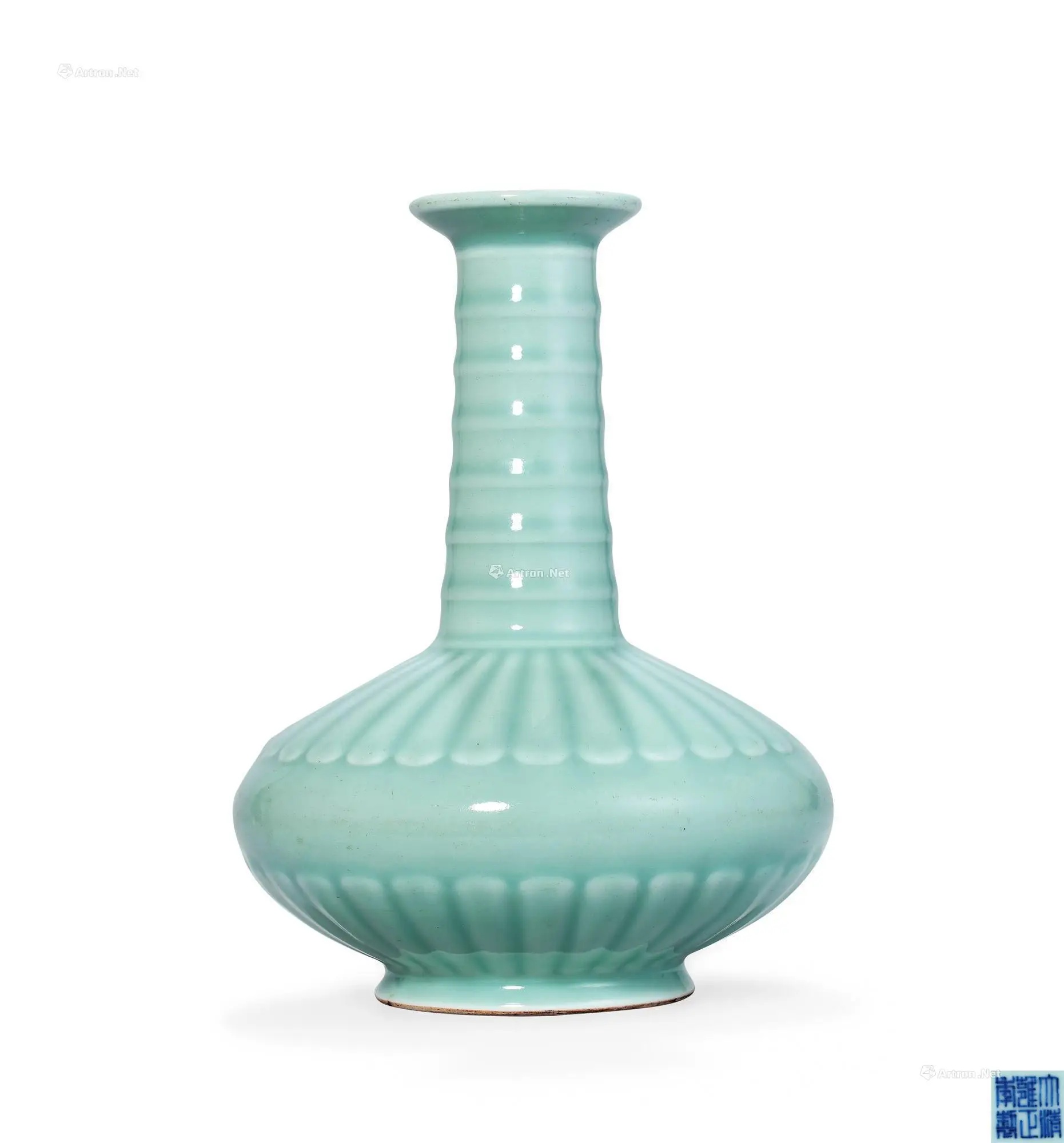 清雍正 粉青釉浮雕菊瓣弦纹瓶
