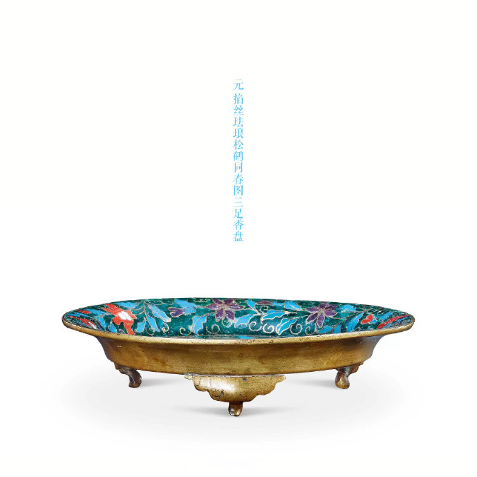 元 掐丝珐琅松鹤同春图三足香盘