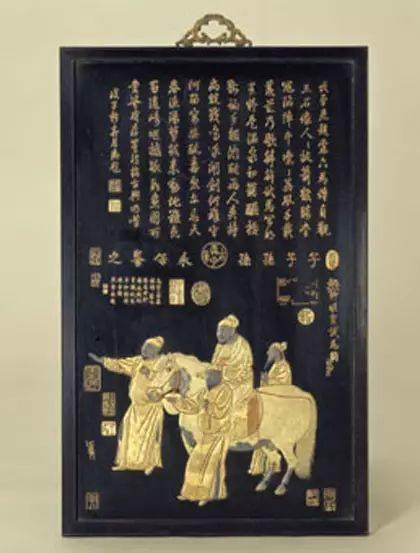 黑漆描金《明皇试马图》挂屏,清乾隆,高86.5cm,宽54.5cm。清宫旧藏