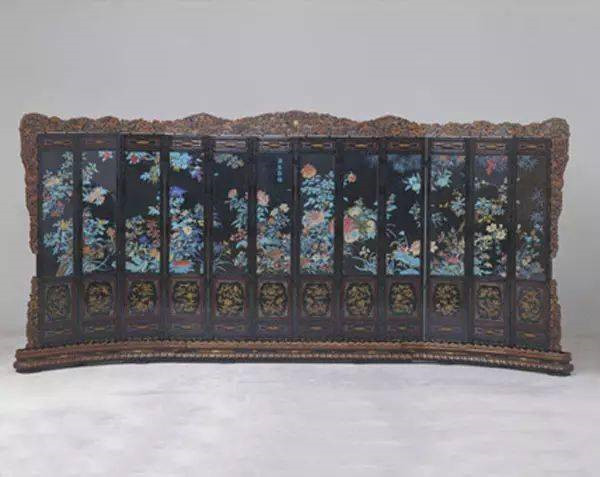 此围屏整体造型稳重大方,装饰图案色彩艳丽,堪称清乾隆时期家具艺术的精品。