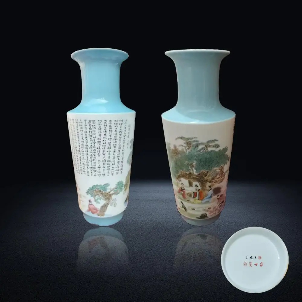 文人瓶形制:“撇口、长颈、直腹”的器型,源自宋代“梅瓶”的变体,更显“秀雅挺拔”,契合文人瓷“形雅意深”的审美标准,是王锡良对“器型与题材适配性”的精准把控。