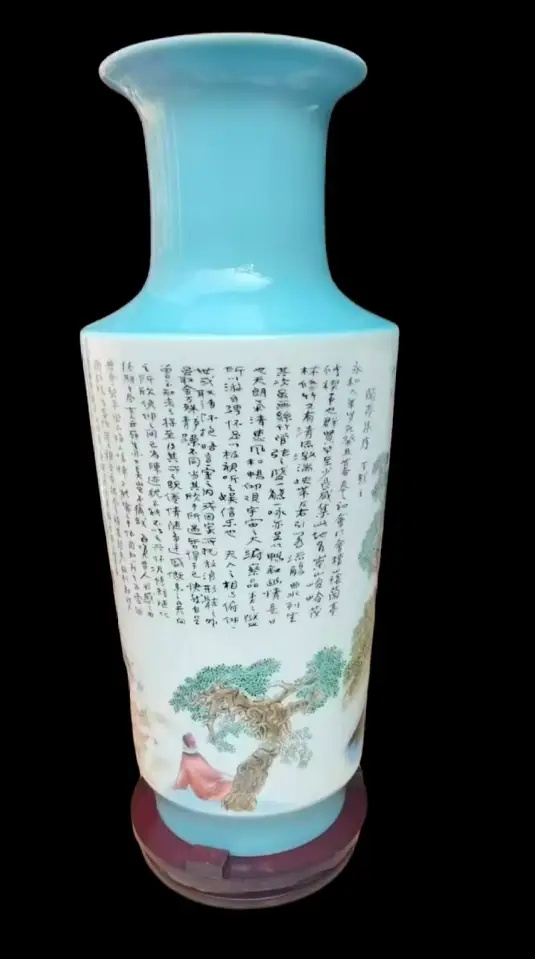 诗文题跋:瓶身的《兰亭集序》节选,以“行书”书写,笔势婉转,与绘画形成“图文互释”的效果——诗文传递“文人精神”,绘画再现“雅集场景”,二者结合使作品成为“可赏、可读、可品”的文人瓷;