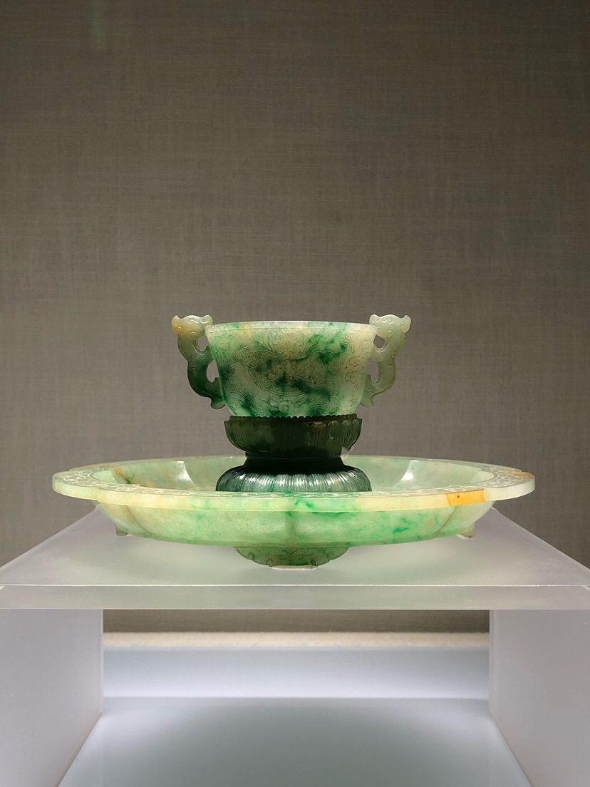 上图为翠雕龙纹杯盘;