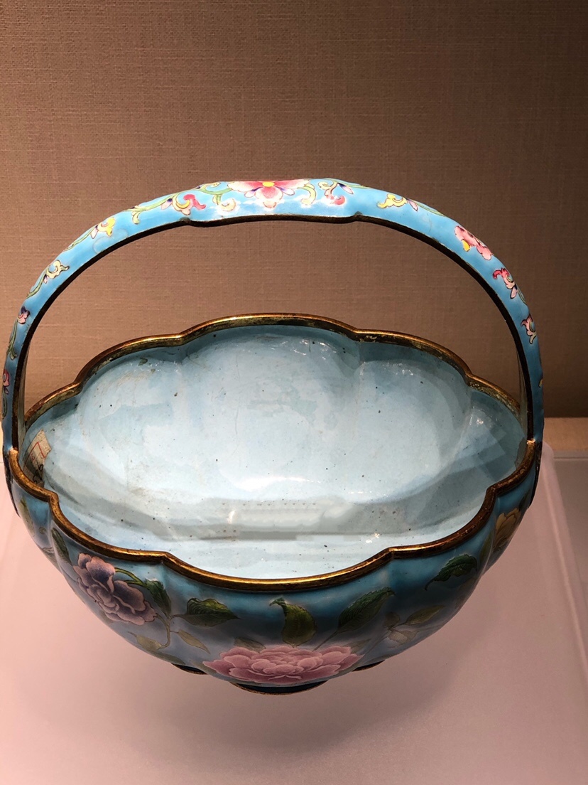 珍宝馆*清宫旧藏*画珐琅牡丹纹葵花式花篮