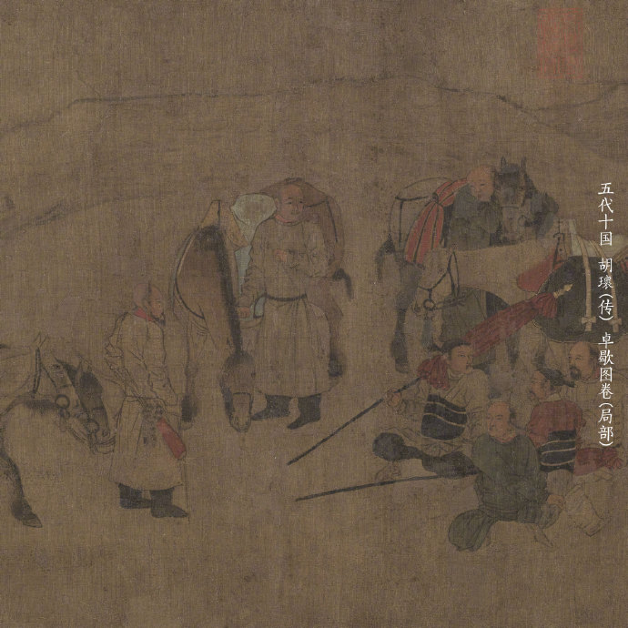 健步善行、忠诚坚韧的马,自古便是人类生活中可靠的伴侣。这幅《卓歇图》,生动描绘了人群携马出游歇息时的画面,充满了浓厚的北方草原民族生活气息。