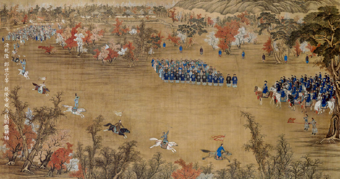 清乾隆,郎世宁等,乾隆帝观马技图像横轴