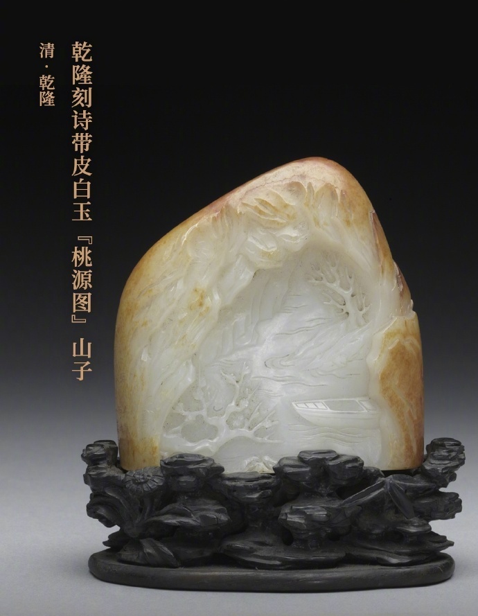 乾隆刻诗带皮白玉“桃源图”山子