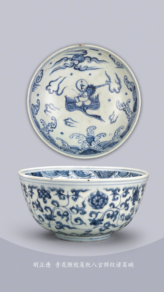 明 正德 青花缠枝莲托八吉祥纹诸葛碗