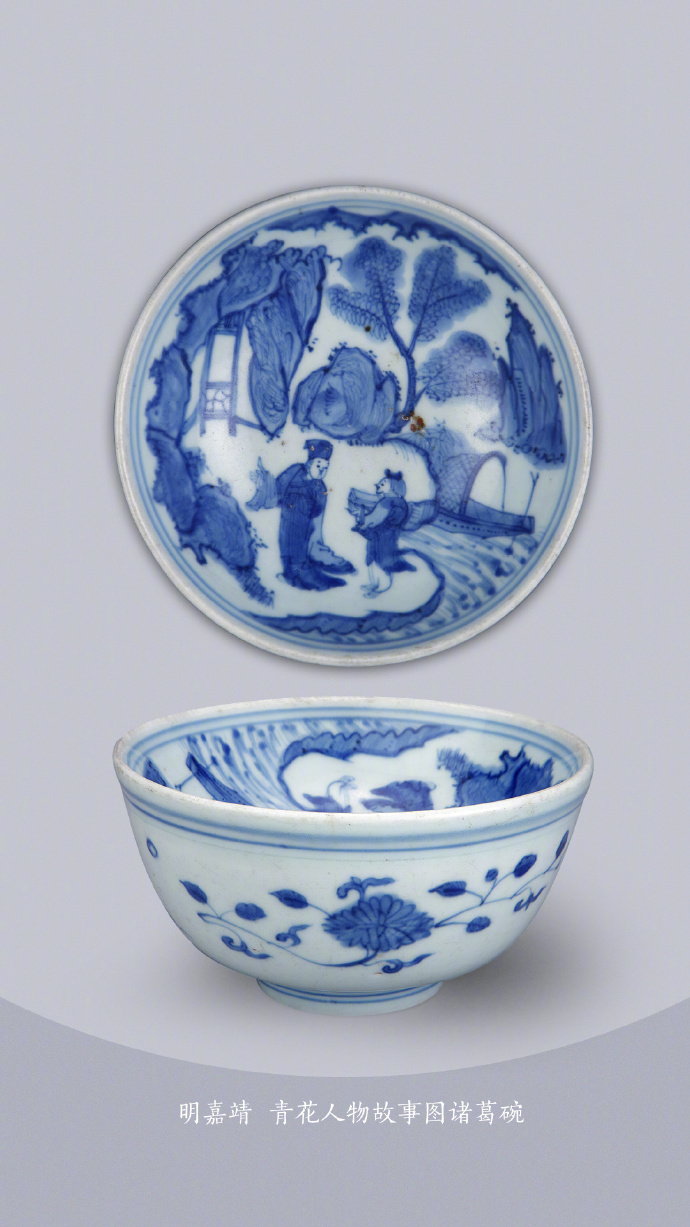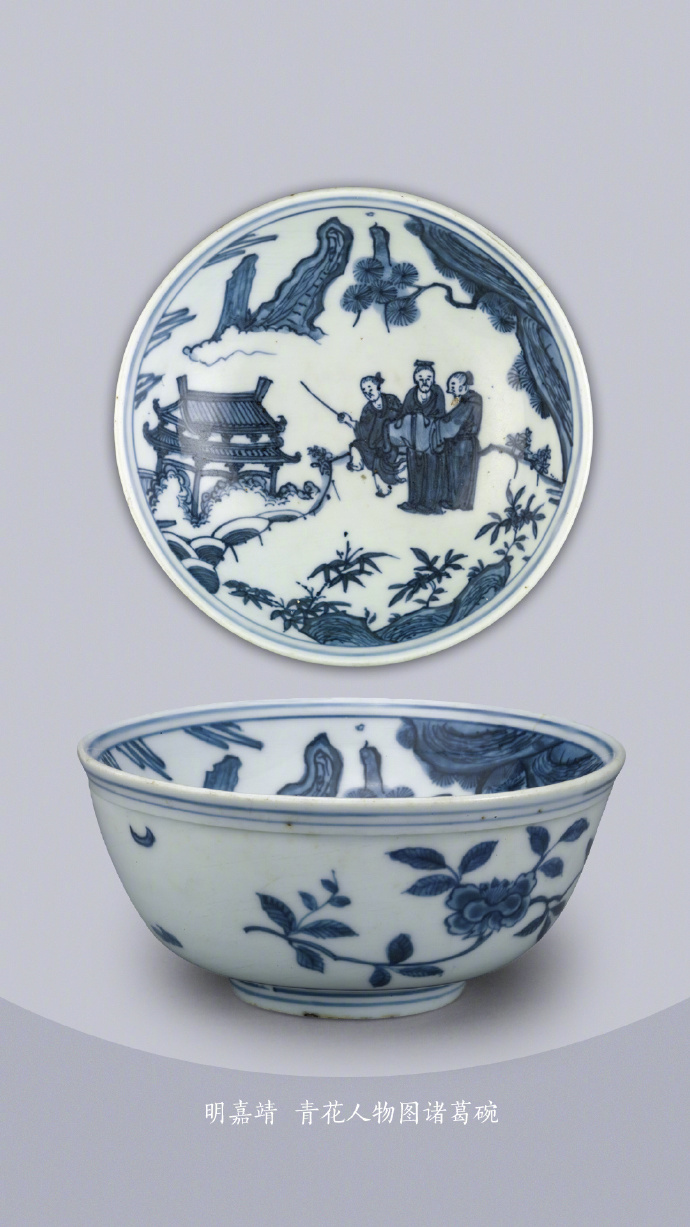 明 嘉靖 青花人物故事图诸葛碗