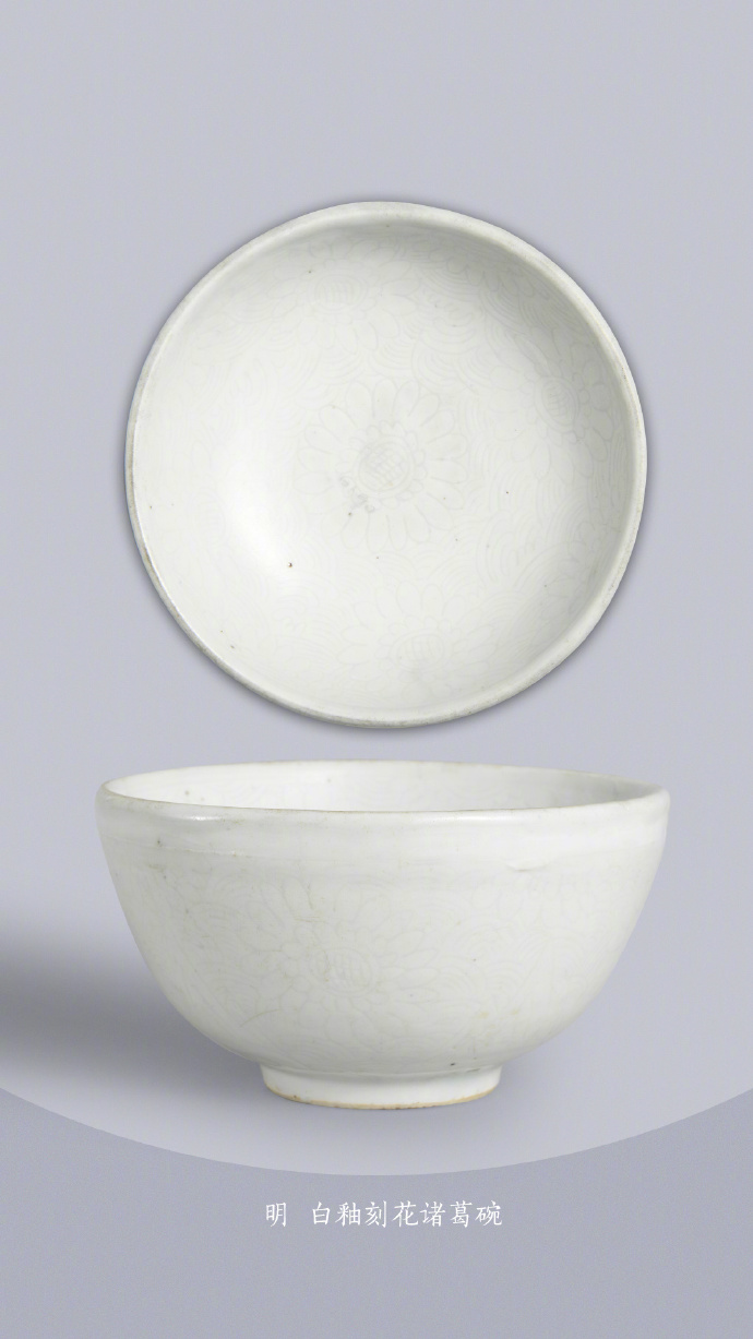 明 白釉刻花诸葛碗