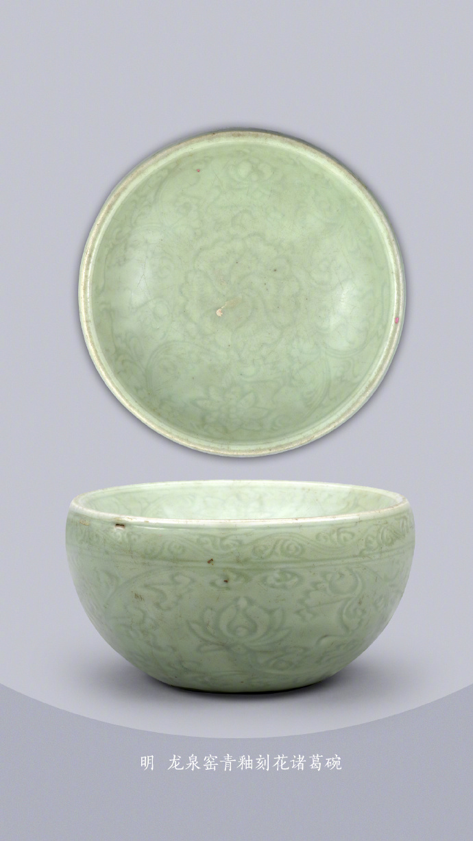 明 龙泉窑青釉刻花诸葛碗